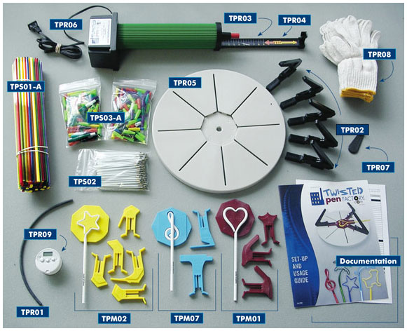 Includes 7 molds (pick any 7 from our stock mold designs). Also comes with tube heating oven, bending base, 5 shaping clamps, practice rod, red teflon tube, calibration slide, lift/pry bar, 6 pair cotton gloves, oven timer, 100 pen tubes, 100 ink cartridges, 200 pen caps and documentation.