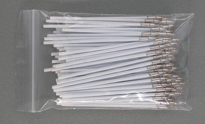 Ink cartridges are available in groups of 100 per bag (ordering a quantity of 3 will be 300 ink cartridges). They are loaded with black ink and ready to be inserted into our pen tubes.