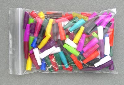 Pen caps are available in a variety of colors to complement the pen tube colors. They may be purchased in groups of 100 (so, ordering a quantity of 3 would be 300 pen caps). Caps are also available in a random assortment of colors.